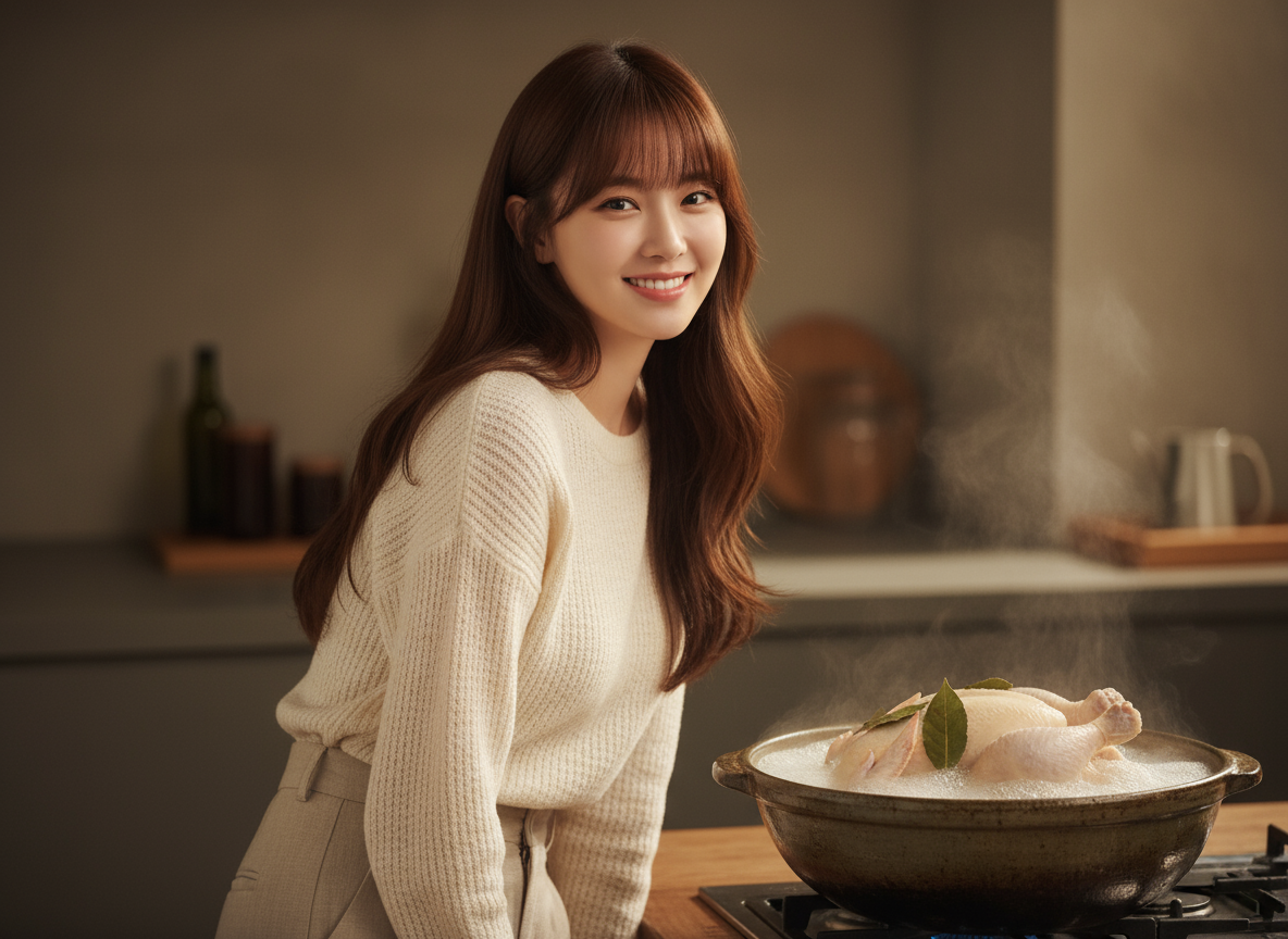 손질한 닭이 잠길 정도의 물에 월계수잎, 통후추, 소주를 넣고 물이 끓으면 닭을 넣어 3~5분 정도 데쳐주세요. 데친 닭은 찬물에 헹궈 불순물을 제거하고 체에 밭쳐 물기를 빼줍니다. 이 과정이 깔끔한 국물 맛의 비결입니다.