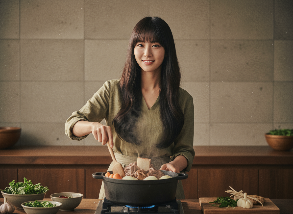 기름에 고춧가루를 볶아 붉은 기름을 내고, 국간장, 마늘을 넣어요. 삶은 고기와 채소를 넣고 육수를 부어 15분 끓이면 돼요. 소금으로 간 맞추고 참기름 한 방울로 마무리! 💡