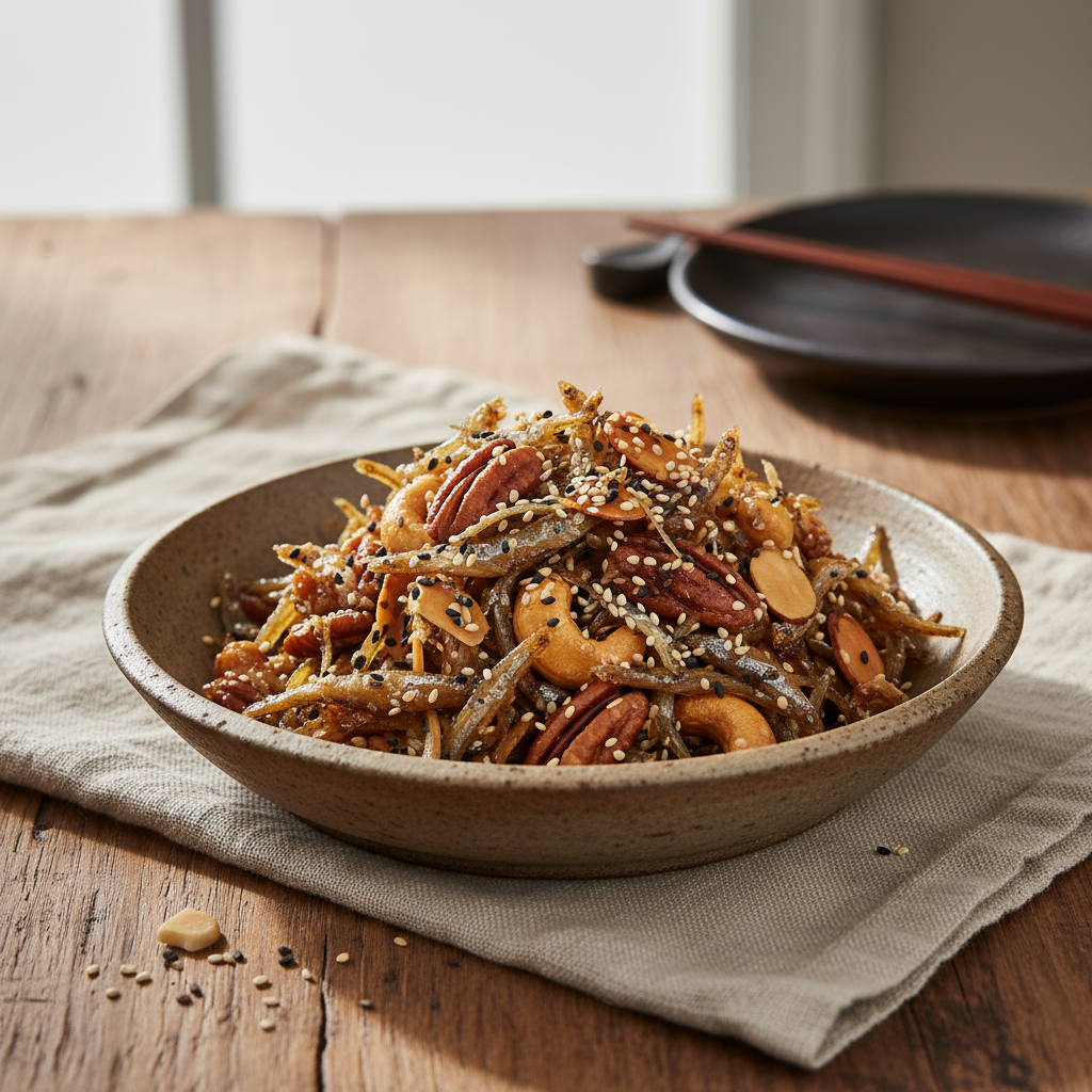 칼슘이 풍부한 국민 반찬이죠. 중멸치를 깨끗이 손질해서 마른 팬에 먼저 볶아 비린내를 날려요. 여기에 식용유, 간장, 물엿, 설탕을 넣고 약불에서 조물조물 볶아주세요. 견과류나 땅콩을 함께 넣으면 고소함이 더해져요. 고추를 송송 썰어 넣으면 매콤한 맛도 즐길 수 있답니다.
