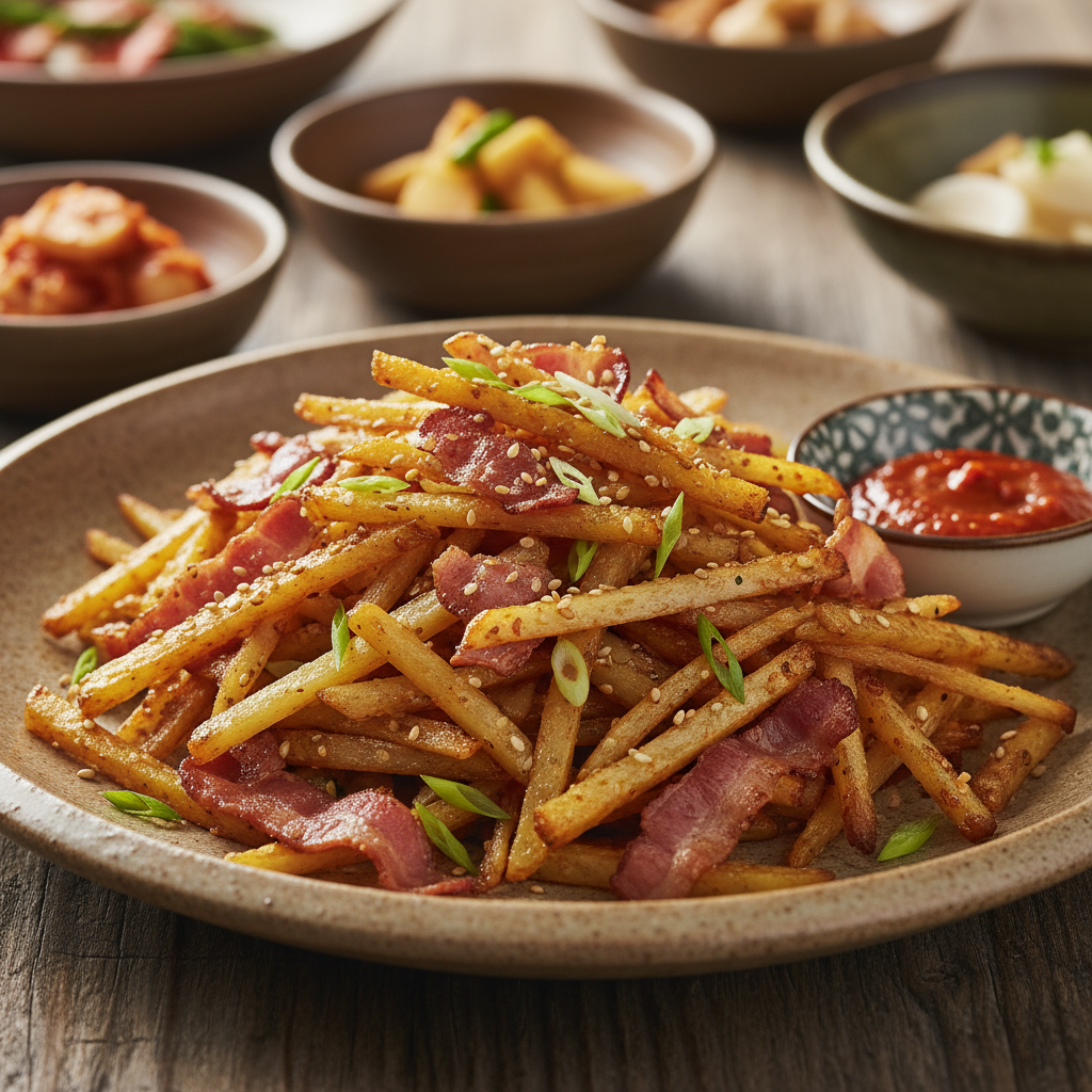고소하고 짭짤한 맛이 일품이에요. 감자는 얇게 채 썰어 찬물에 담가 전분을 빼주세요. 베이컨은 한입 크기로 썰어요. 팬에 베이컨을 먼저 볶아 기름을 내고, 물기를 뺀 감자채를 넣어 볶아요. 소금과 후추로 간을 맞추고, 파슬리 가루를 뿌려 완성해요. 바삭한 식감이 좋은 도시락 반찬 만들기 레시피랍니다.