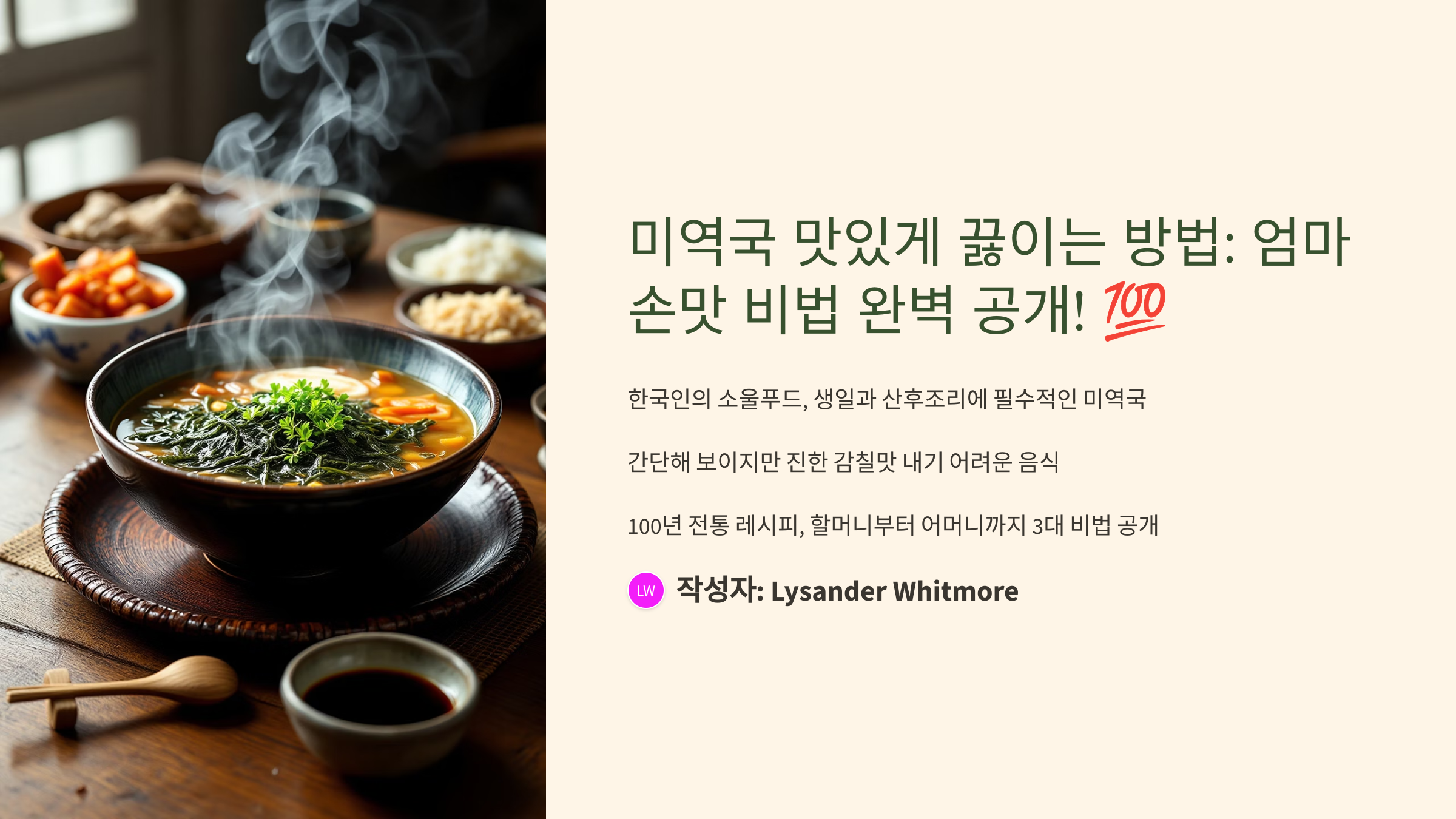 안녕하세요! 오늘은 한국인의 소울푸드이자 생일, 산후조리 등 특별한 날 빠지지 않는 미역국 이야기를 해볼까 해요. 😊 간단해 보이지만 은근히 맛내기 어려운 음식이기도 하죠. 하지만 걱정 마세요!