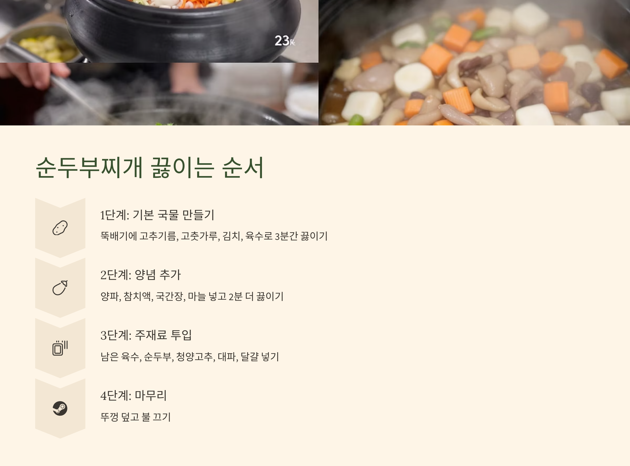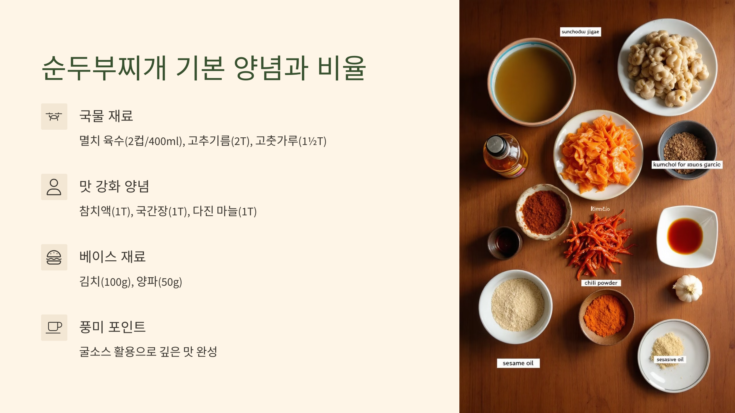 🍳 순두부찌개 황금레시피 단계별 조리법