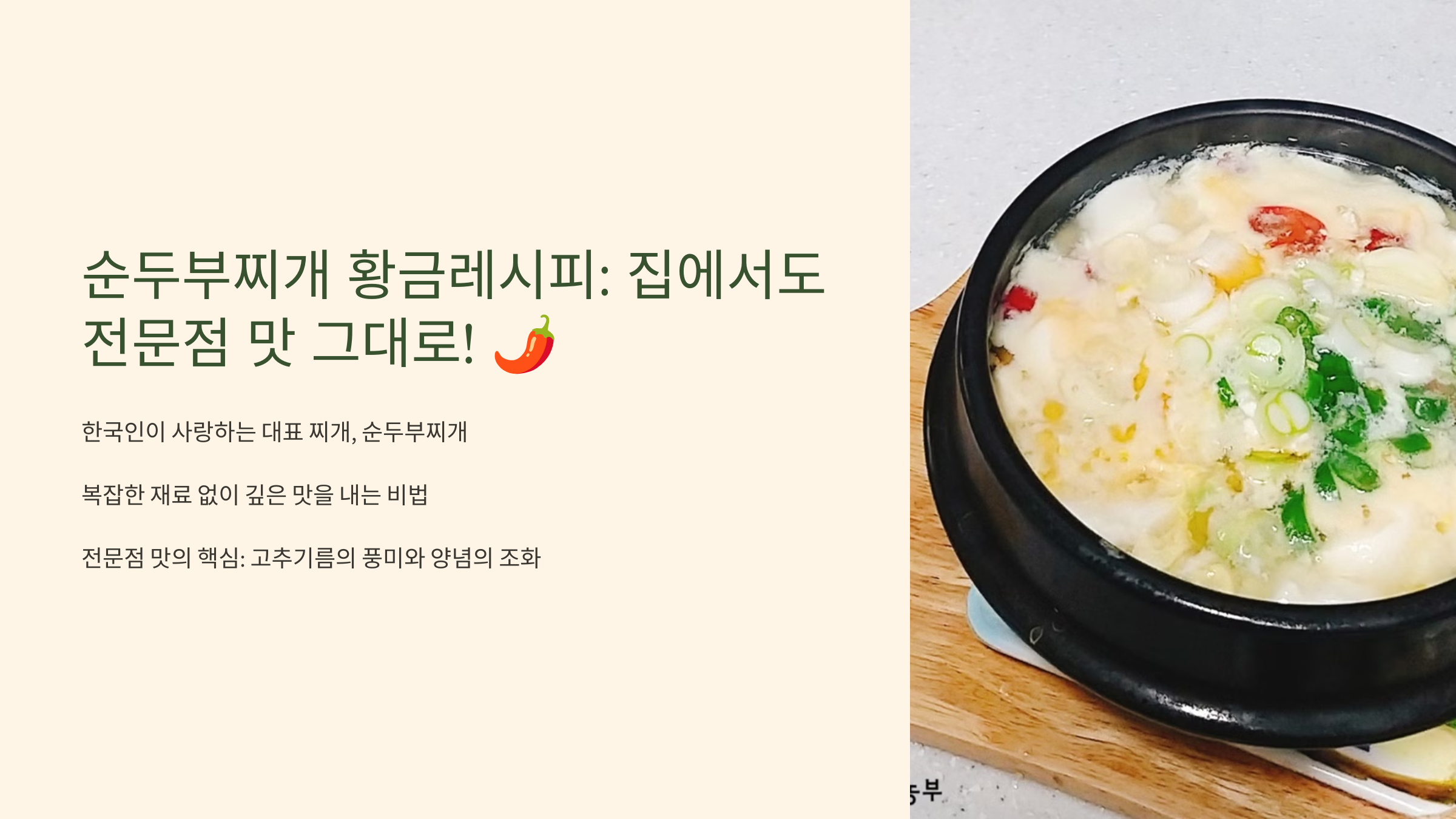순두부찌개 황금레시피: 집에서도 전문점 맛 그대로! 🌶️
