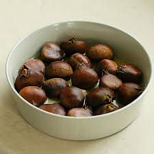 찬물에 충분히 식힌 밤은 윗부분을 칼로 살짝 잘라낸 뒤 손으로 꾹 누르거나 반으로 가르면 쏙 하고 알맹이가 빠져나오기도 합니다.