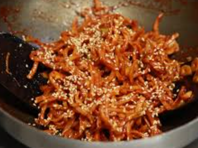 팬에 식용유를 두르고 다진 마늘을 볶아 향을 낸 뒤, 나머지 양념장 재료(고추장, 고춧가루, 간장, 맛술, 설탕, 올리고당)를 모두 넣고 중약불에서 바글바글 끓여줍니다. 이것이 바로 진미채볶음 황금레시피의 맛을 좌우하는 양념장입니다.