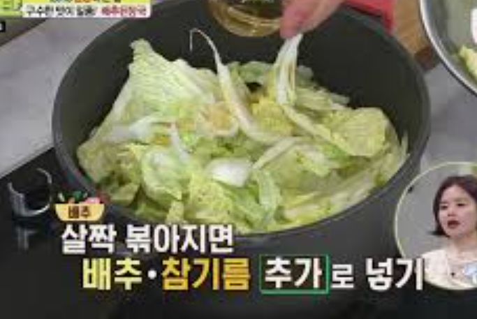 | 메인 재료 | 알배기 배추 1/2통 (약 300g), 대파 1/2대, 청양고추 1개, 홍고추 1/2개 |
