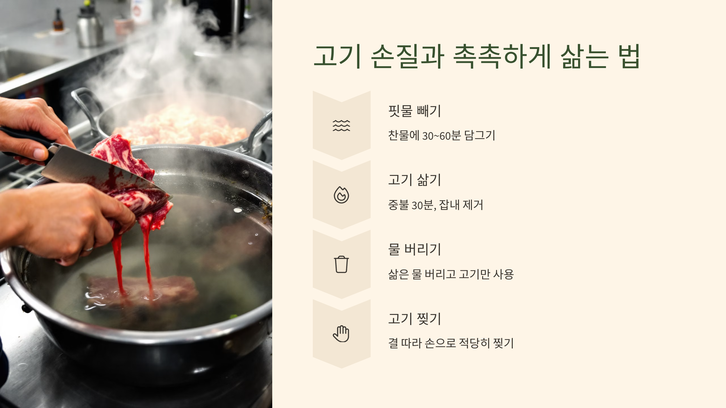 - 부드러운 식감: 고기를 너무 오래 삶으면 오히려 질겨질 수 있습니다. 적정 시간을 지키고, 압력솥을 사용하면 시간을 단축하고 더욱 부드럽게 만들 수 있습니다.