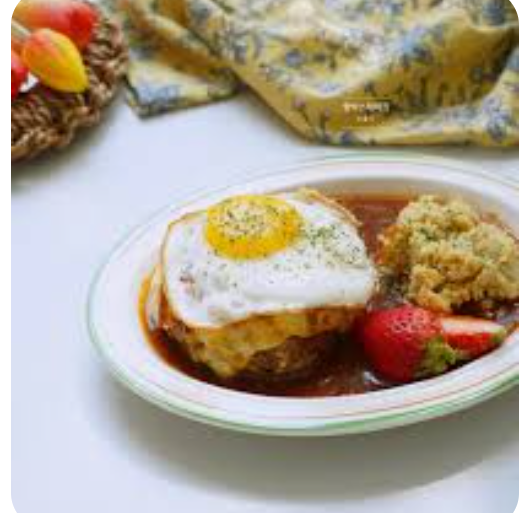 잘 구워진 함박스테이크 위에 소스를 듬뿍 뿌리고, 계란 프라이 하나 올려주면 완벽한 한 끼 식사가 완성됩니다. 밥과 함께, 혹은 빵과 함께 즐겨도 정말 맛있어요.