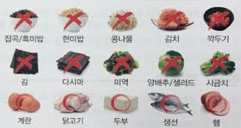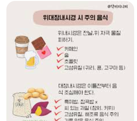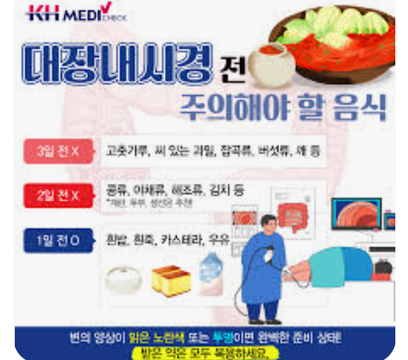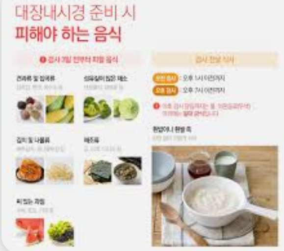 | 검사 2일 전 | 흰죽, 미음, 맑은 국물, 두부, 계란 | 김치, 나물, 해조류, 콩류, 현미밥 |