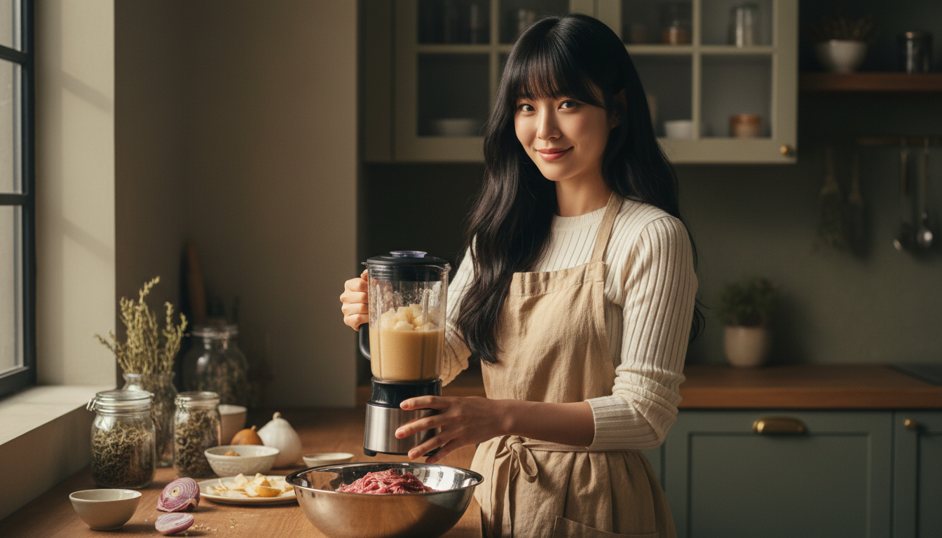 여기서 저만의 꿀팁은 배와 양파를 갈아 넣는 것입니다. 배의 천연 연육 작용이 고기를 부드럽게 만들고, 인위적이지 않은 은은한 단맛을 더해줍니다.