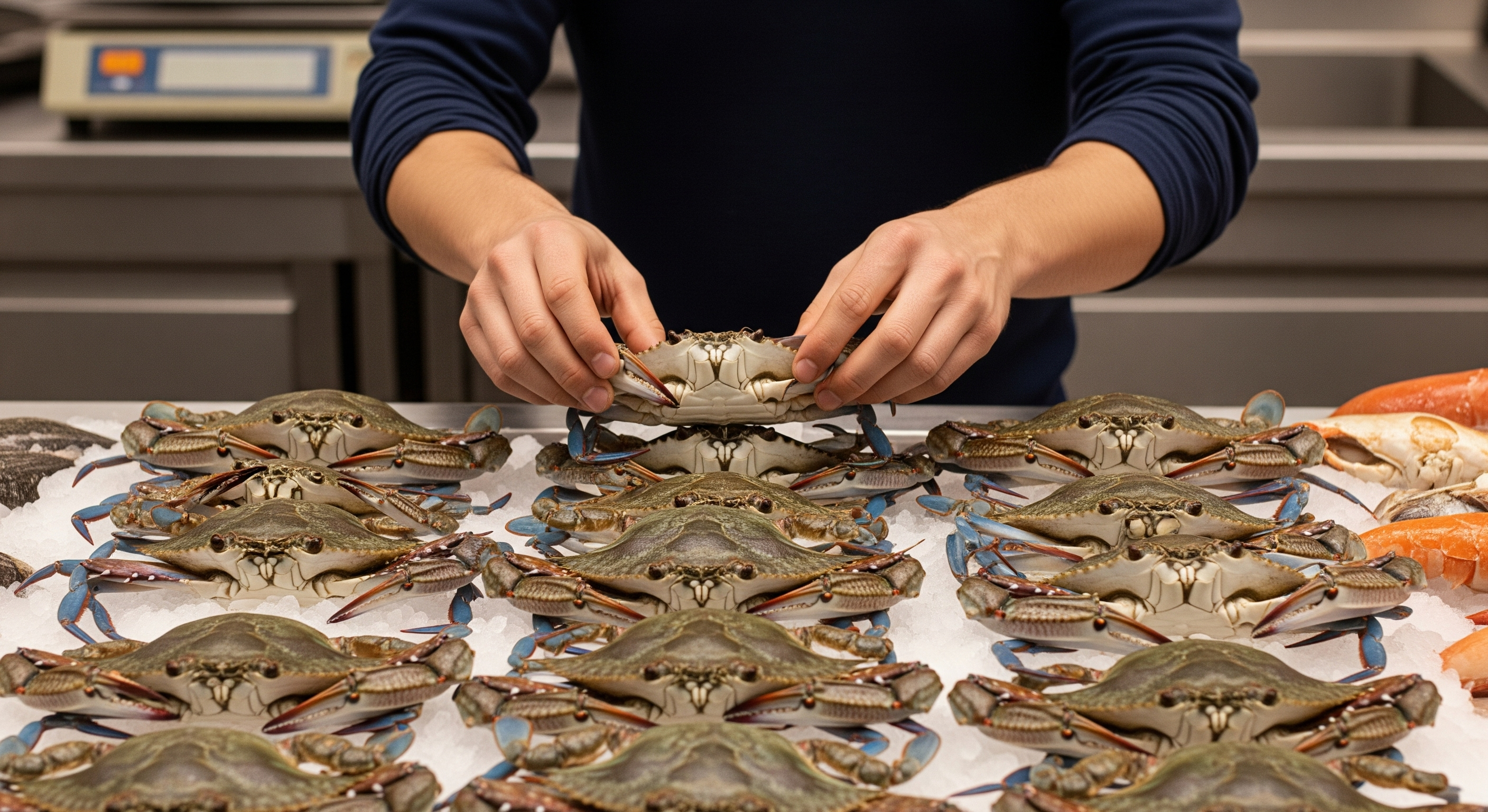 꽃게를 뒤집어 배 부분을 확인해 보세요. 배 딱지가 하얗고 깨끗하며, 눌렀을 때 단단해야 신선한 꽃게입니다. 검은빛이 돌거나 물렁하다면 신선도가 떨어진 것일 수 있습니다.