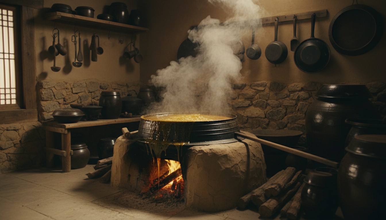 이때가 정말 힘든 순간인데, 가족들 손을 빌려 함께 저으면 즐거운 추억이 되더라고요. 이 과정이 바로 전통 고추장 담그는법의 핵심입니다.