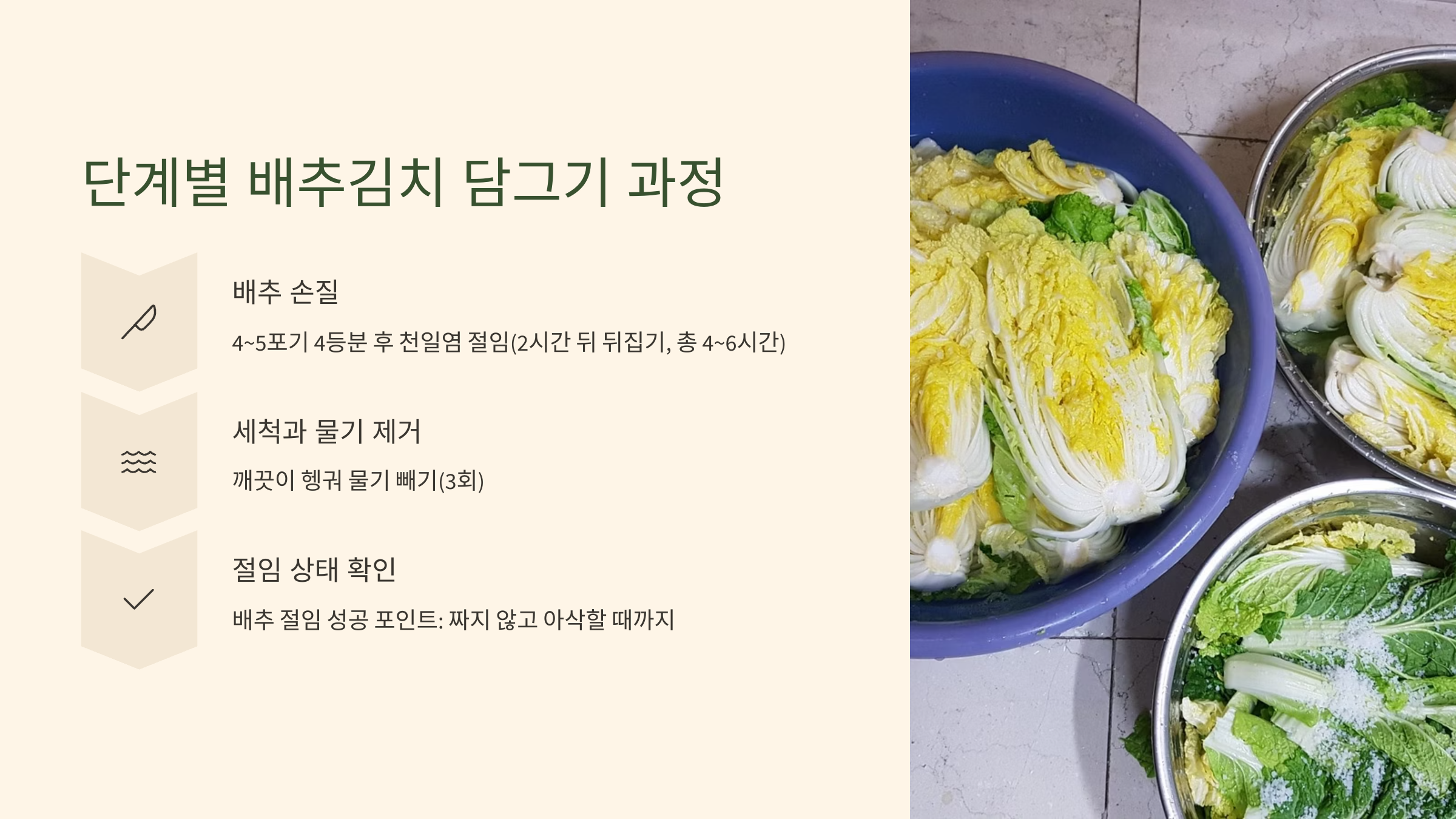 자, 이제 본격적으로 배추김치 맛있게 담는법 과정을 살펴보겠습니다. 차근차근 따라오시면 어렵지 않아요!