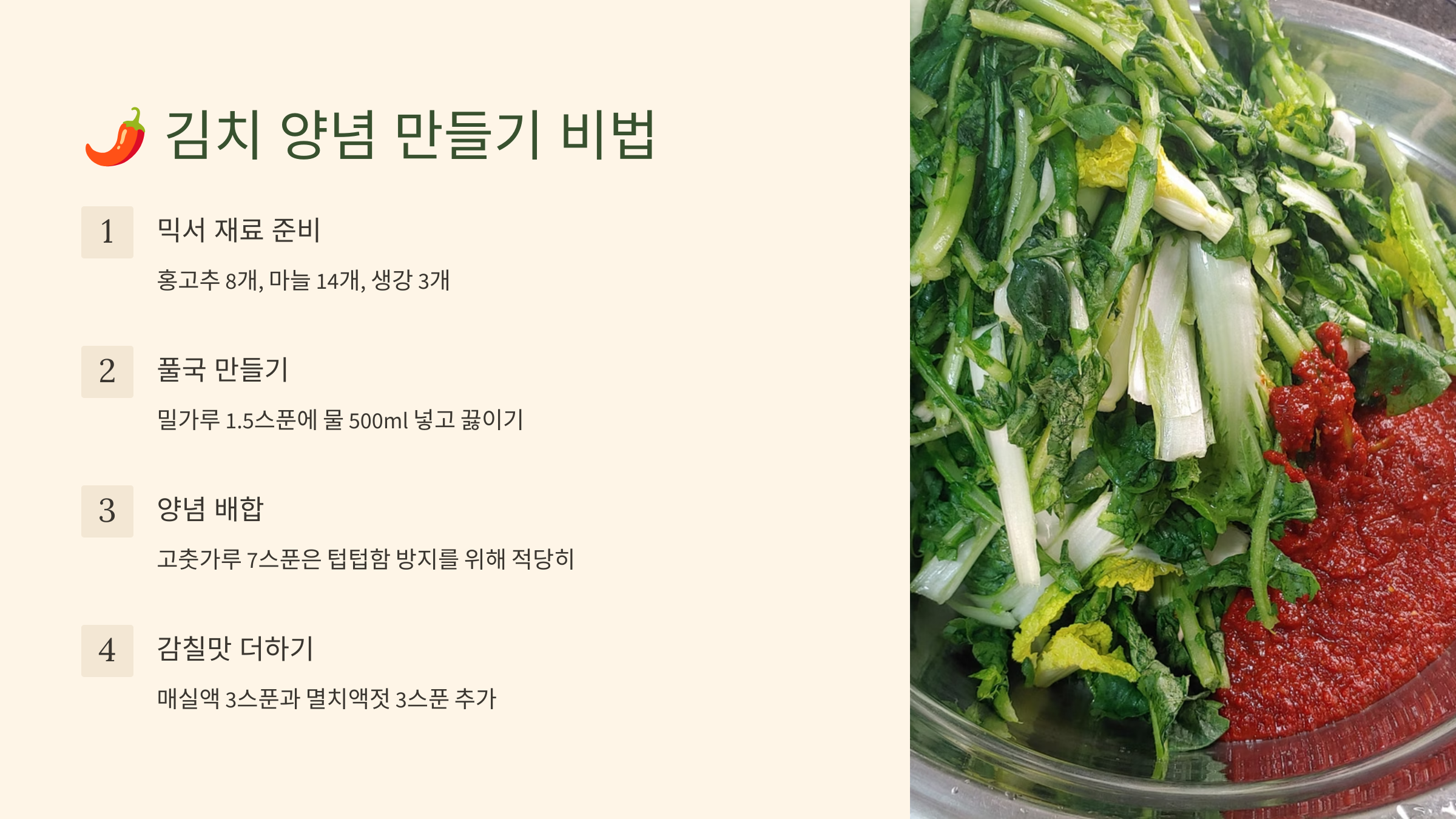 🌶️ 맛있는 김치 양념 만들기: 황금 비율 레시피