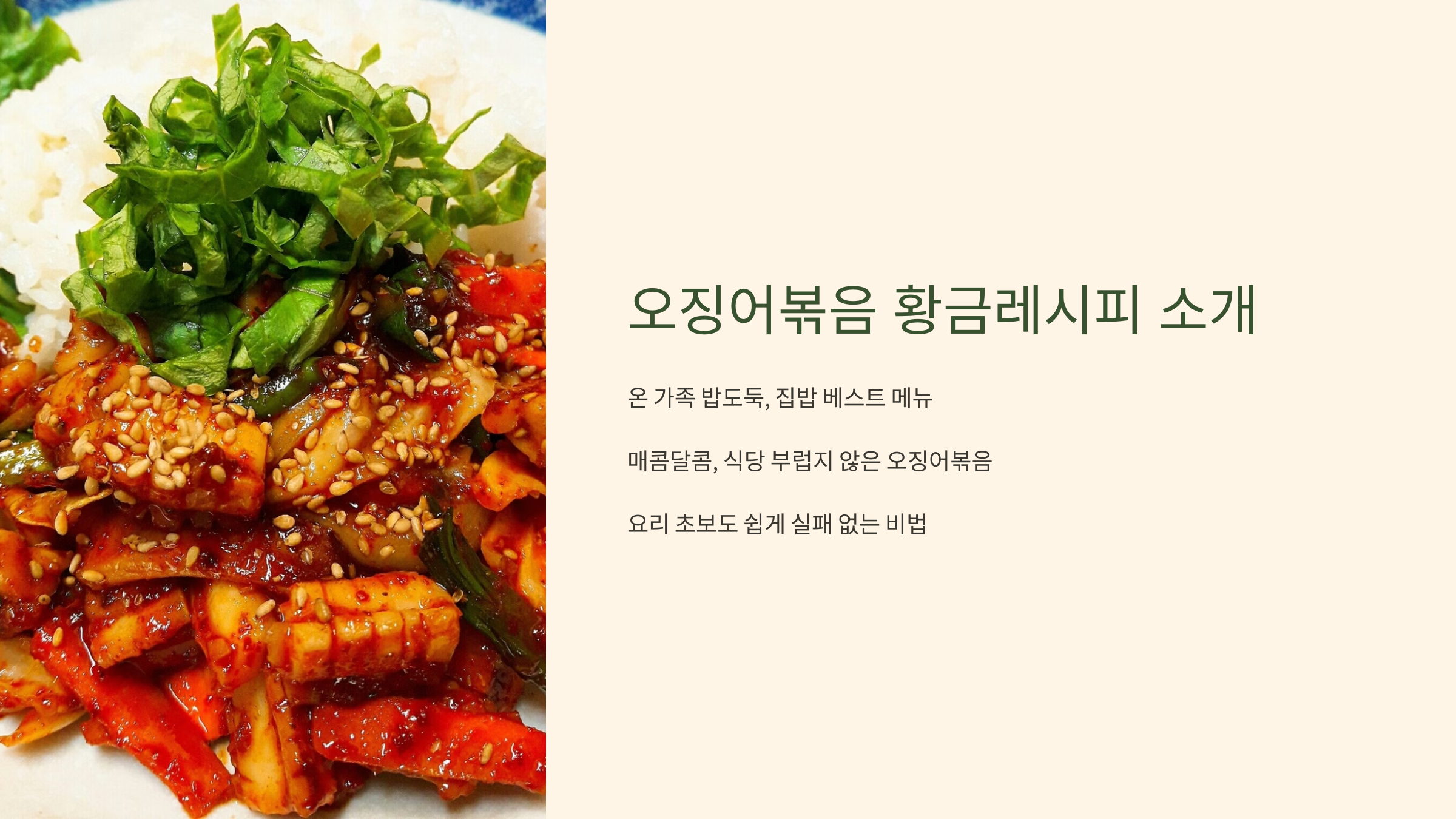 안녕하세요! 오늘은 온 가족 모두 좋아하는 매콤달콤 맛있는 밥도둑, 오징어볶음 레시피를 가지고 왔습니다. 식당에서 사 먹는 오징어볶음 맛, 집에서는 왜 안 날까 고민하셨던 분들 많으시죠?