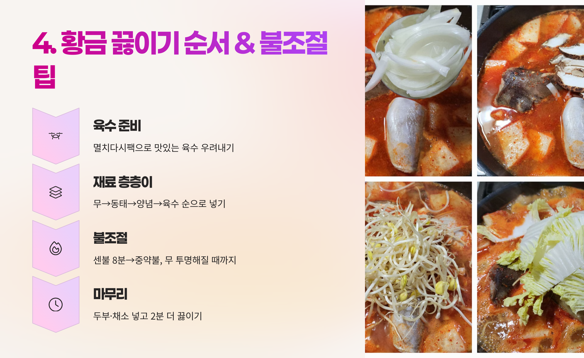 이 글이 **동태찌개 맛있게 끓이는법**을 찾는 분들께 많은 도움이 되었으면 좋겠습니다. 맛있게 드세요!