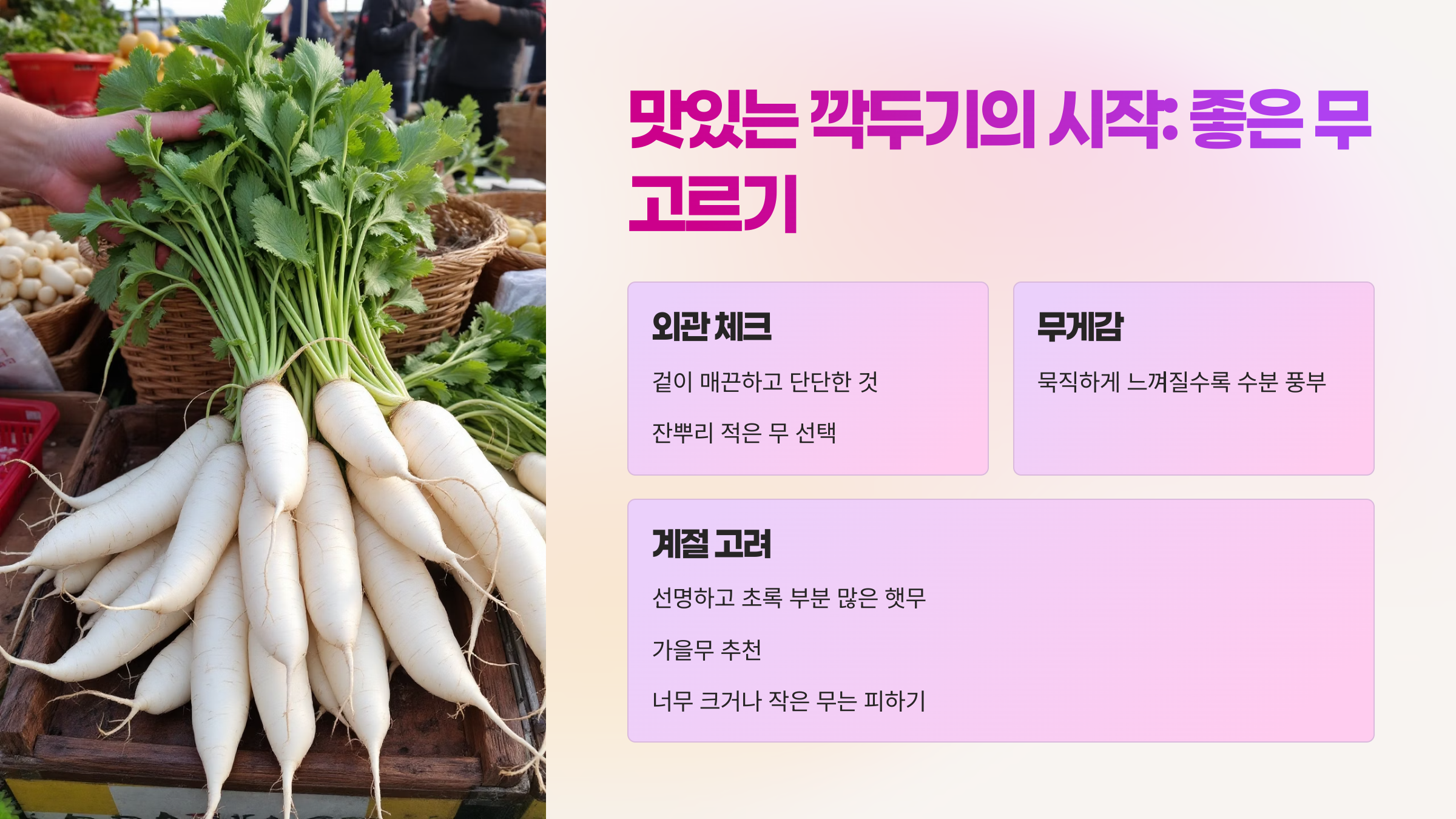 1. 🌟 좋은 무 고르기: 맛있는 깍두기의 첫걸음
