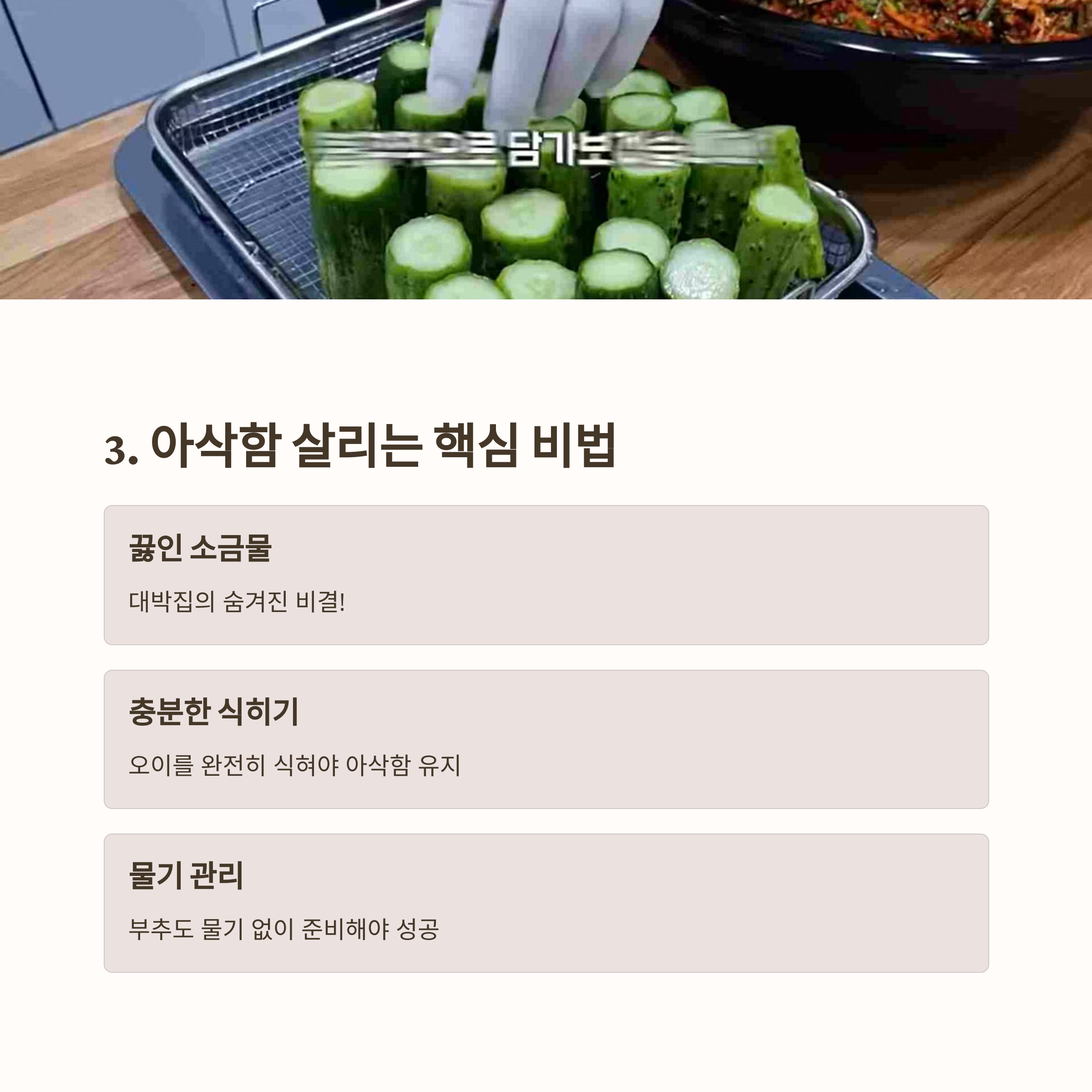 2. 아삭함을 살리는 '뜨거운 소금물' 절이기