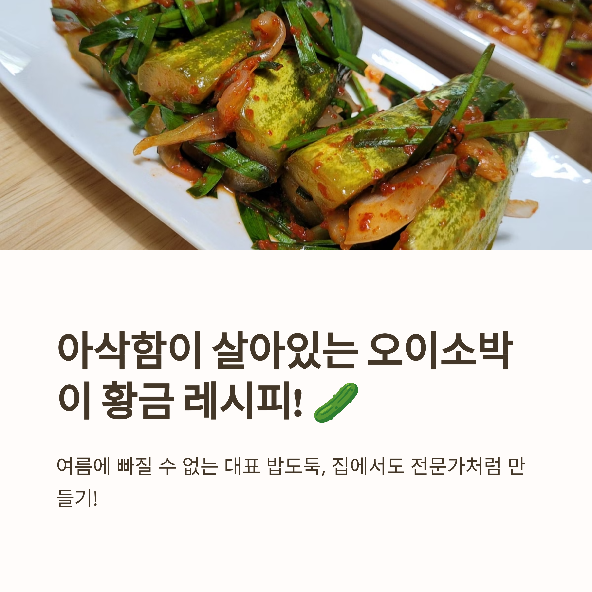 안녕하세요! 😊 쨍쨍한 햇살에 입맛 잃기 쉬운 요즘, 아삭아삭 시원한 오이소박이만큼 밥도둑이 또 있을까요? 상큼한 오이와 매콤달콤한 부추 속이 어우러져 한입 베어 물면 입안 가득 행복이 퍼지는데요. 하지만 막상 담그려고 하면 물이 많이 생기거나 금방 물러져 속상했던 경험, 다들 있으실 거예요.