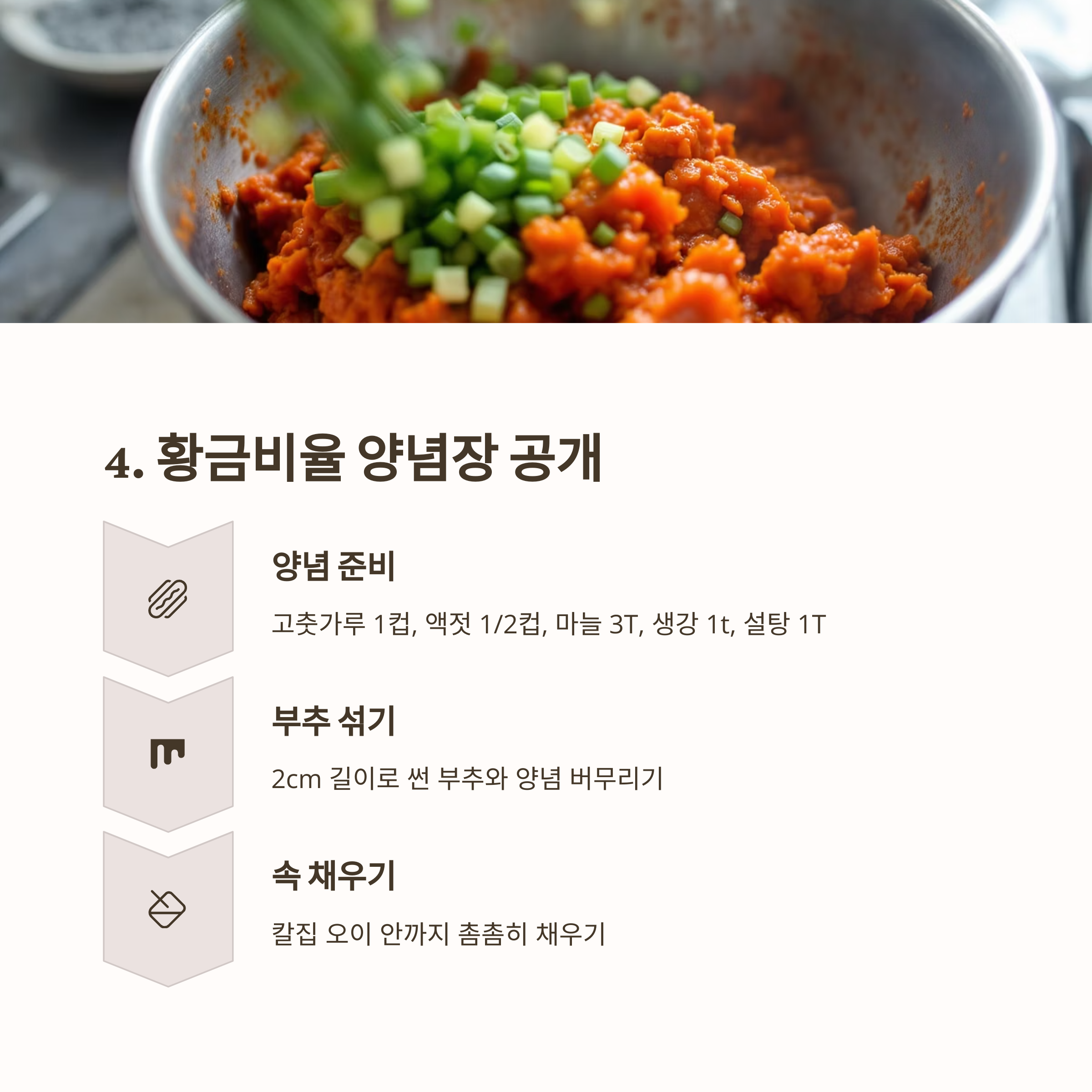 🌶️ 맛깔나는 속 재료 만들기: 황금 비율 양념장