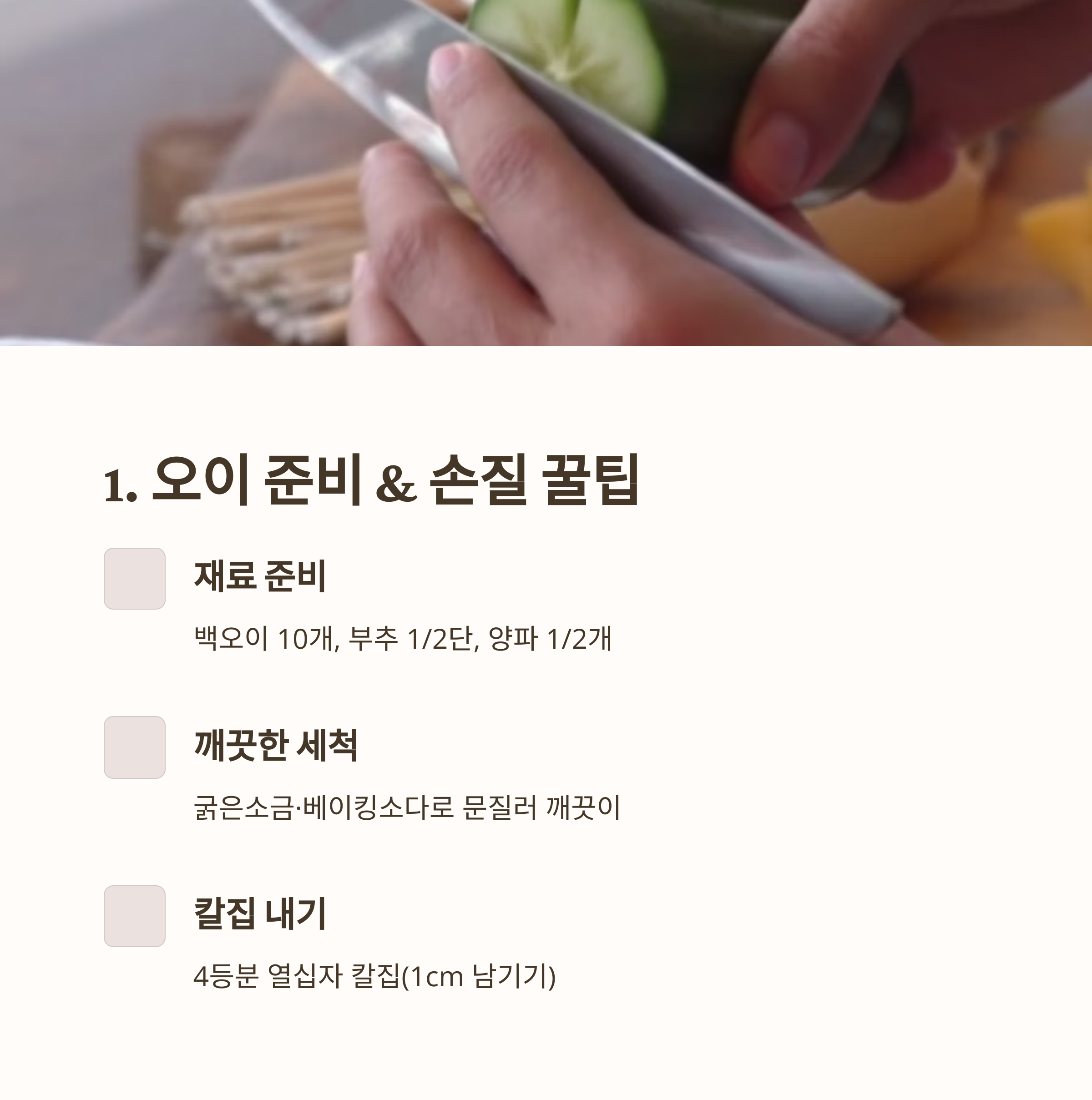 🥒 오이 손질과 절이기: 아삭함의 첫걸음