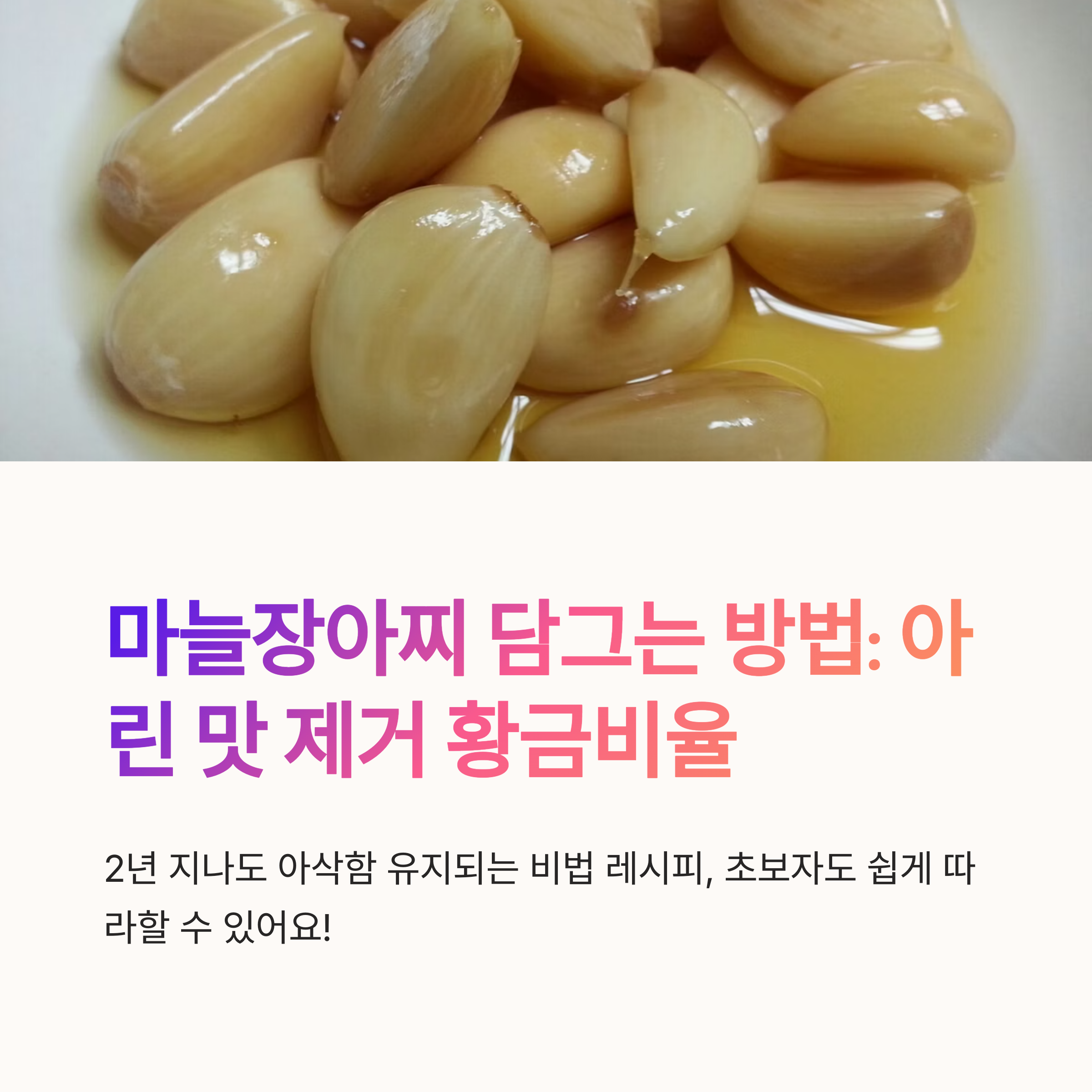 매년 이맘때쯤이면 알싸한 매력의 마늘장아찌를 담그는 분들이 많으실 텐데요. 밥도둑 밑반찬으로 이만한 게 없죠! 하지만 마늘 특유의 아린 맛 때문에 실패하거나, 시간이 지나면 색이 변해서 속상했던 경험, 다들 한 번쯤 있으실 거예요.