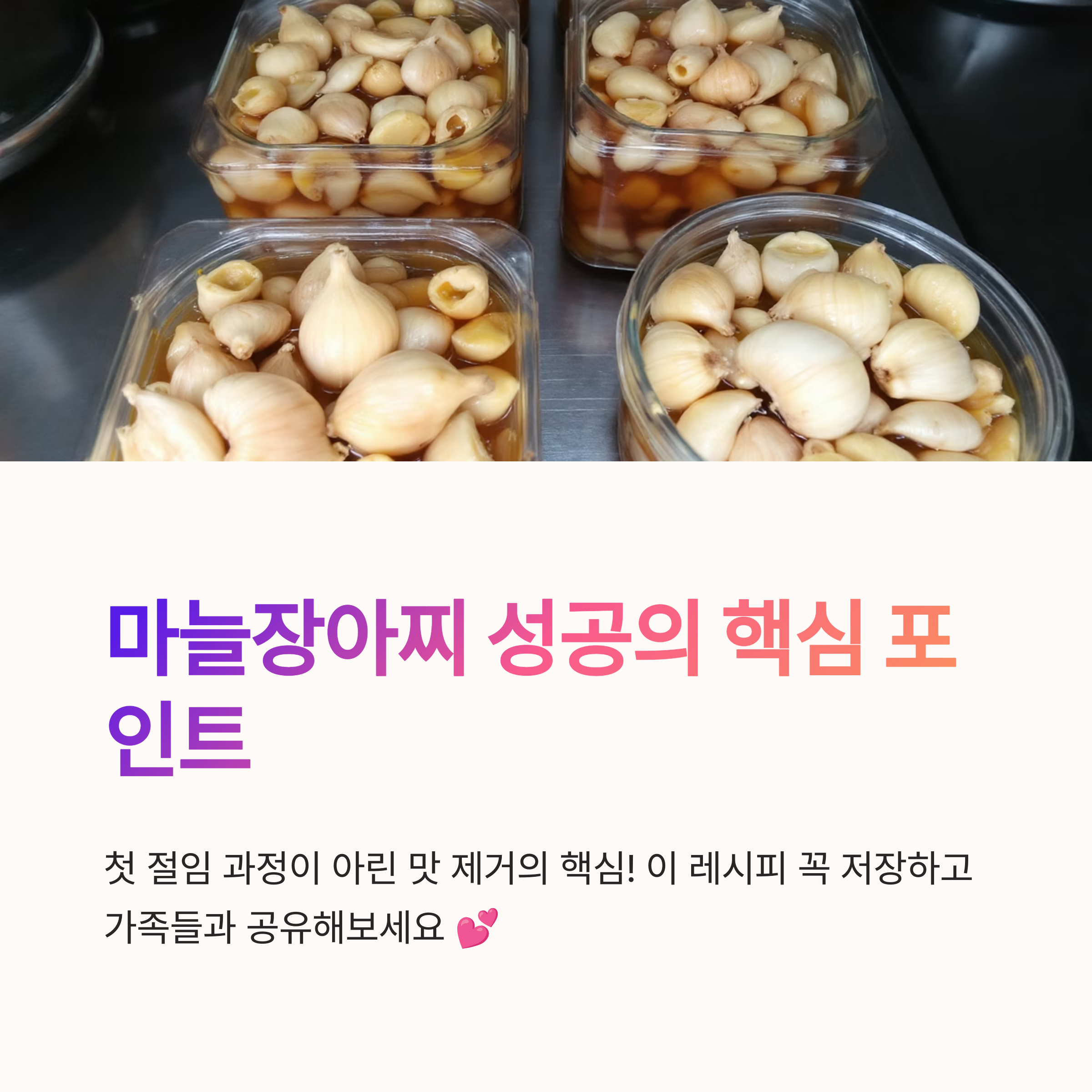 지금까지 아린 맛 없이 아삭한 마늘장아찌 담그는 방법과 실패 없는 마늘 장아찌 황금비율을 알려드렸습니다. 정성껏 담근 마늘장아찌 하나면 여름철 입맛 없을 때 든든한 지원군이 되어줄 거예요. 오늘 알려드린 꿀팁들로 맛있는 마늘장아찌 담그기에 꼭 도전해 보세요! ✅