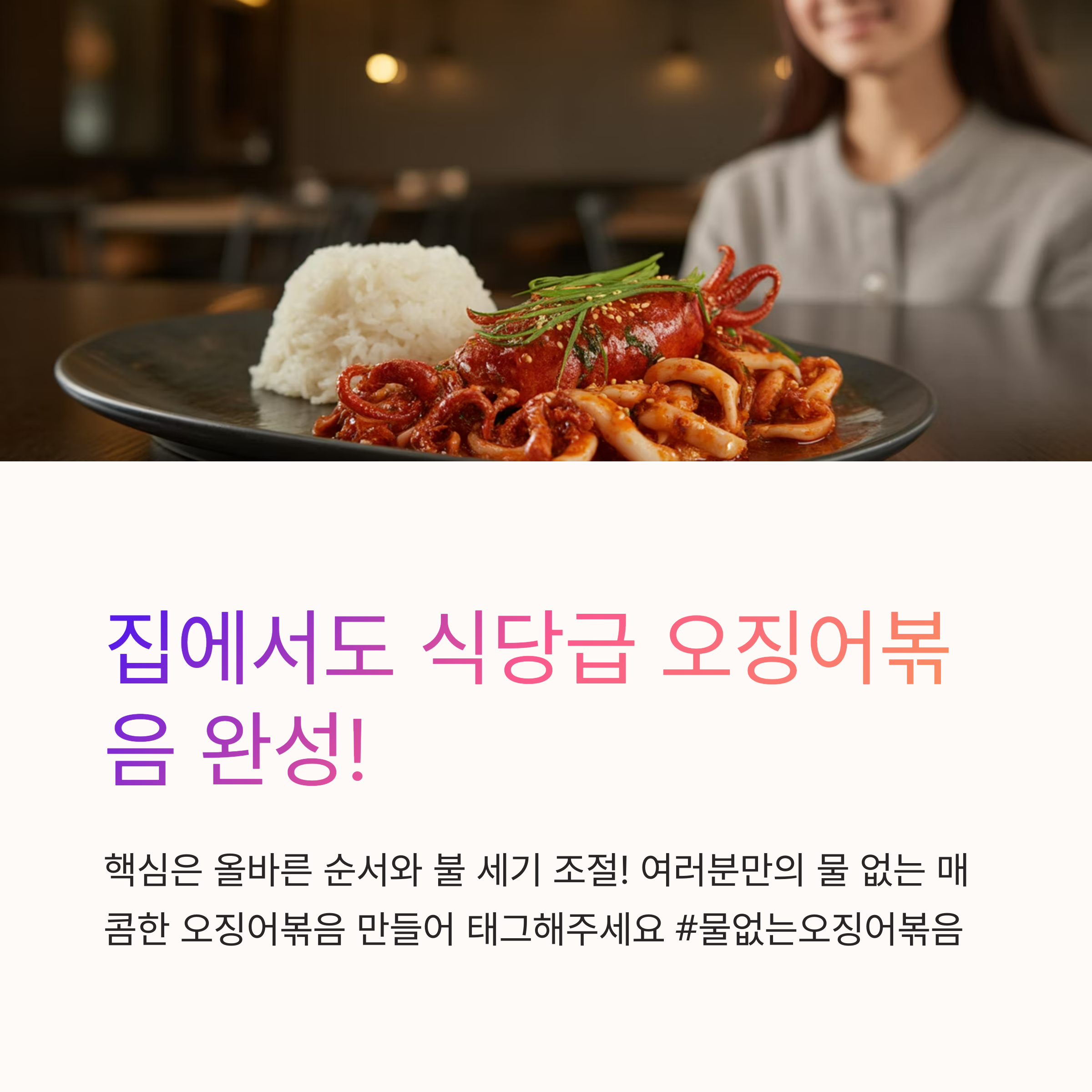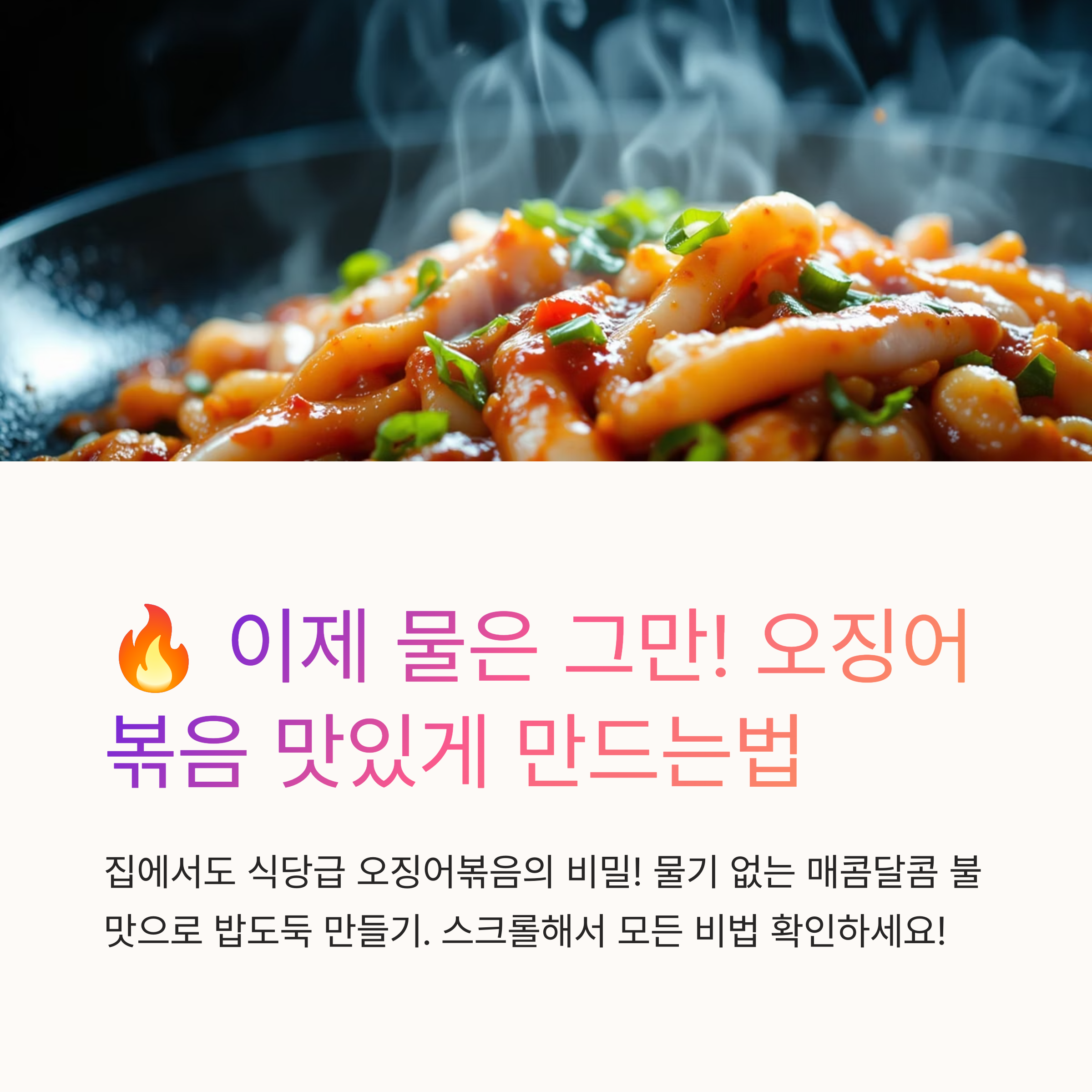 매콤달콤한 양념에 쓱쓱 밥을 비벼 먹으면 밥 한 그릇은 순식간에 사라지게 만드는 마성의 메뉴, 바로 오징어볶음이죠! 😊 하지만 집에서 만들면 어쩐지 사 먹는 그 맛이 안 나고, 무엇보다 흥건하게 생긴 물 때문에 밍밍해지기 일쑤입니다. 저 역시 수많은 시행착오를 겪으며 '왜 내 오징어볶음은 한강이 될까?' 고민했었는데요.