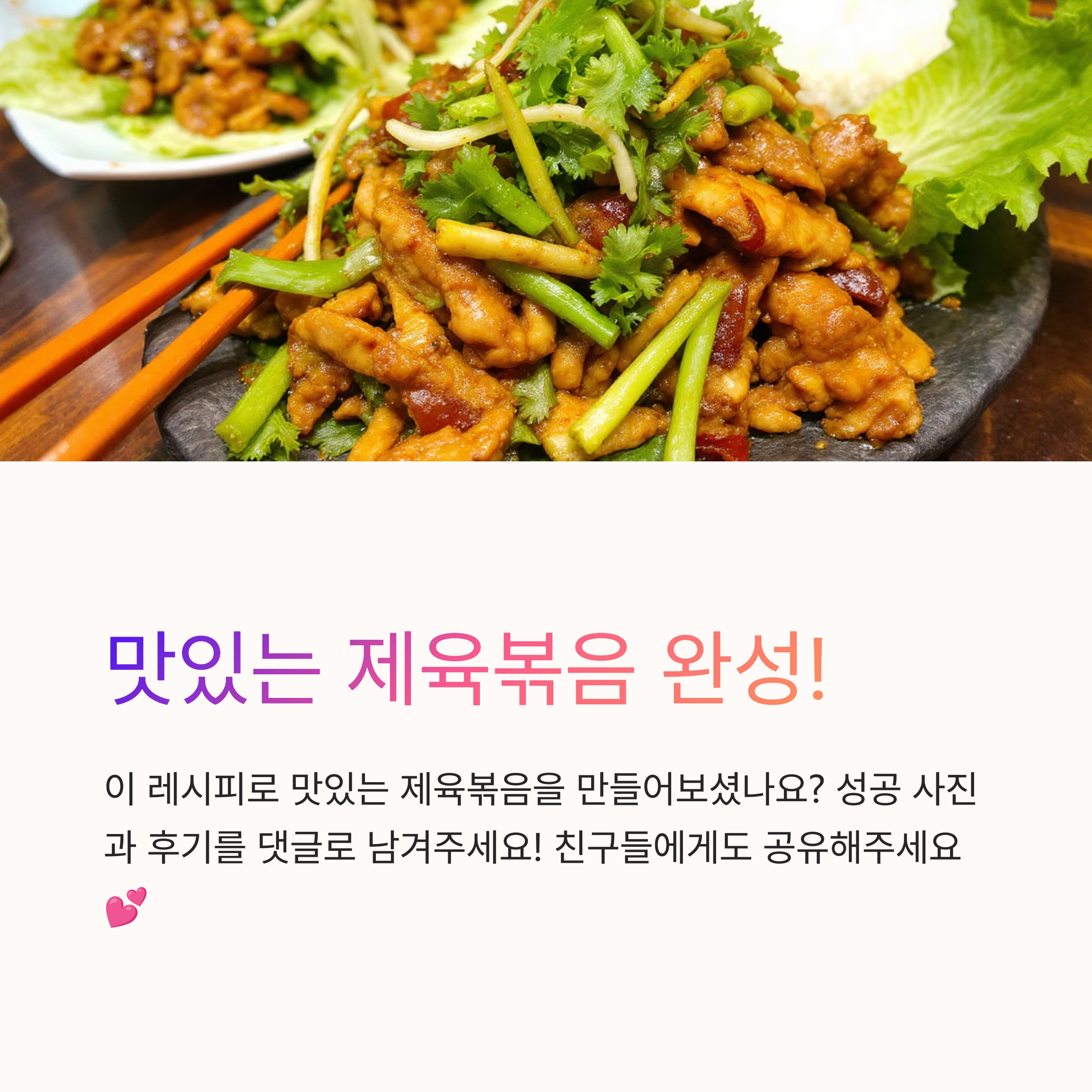 어떠셨나요? 생각보다 어렵지 않죠? 오늘 알려드린 제육볶음 맛있게 만드는법과 백종원 황금레시피의 핵심 꿀팁들만 잘 기억하신다면, 이제 더 이상 식당 맛이 부럽지 않을 거예요.