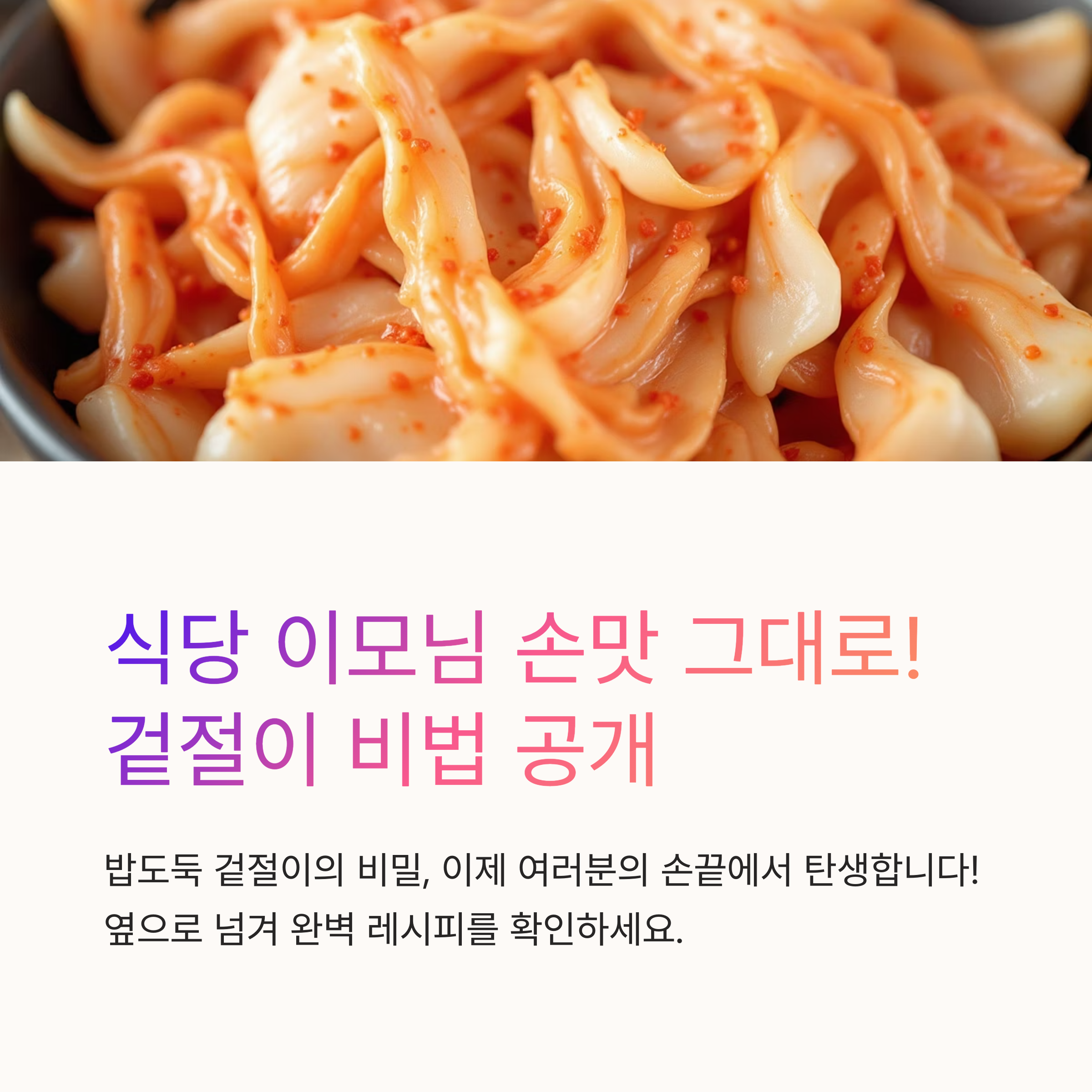 갓 지은 흰쌀밥에, 뜨끈한 칼국수에, 기름진 수육 위에 척 걸쳐 먹는 아삭한 겉절이! 생각만 해도 군침이 돌죠. 😊 10분 만에 만드는 초간단 레시피도 좋지만, 가끔은 '왜 식당에서 먹는 겉절이는 더 착 감기고 맛있을까?' 궁금할 때가 있어요.