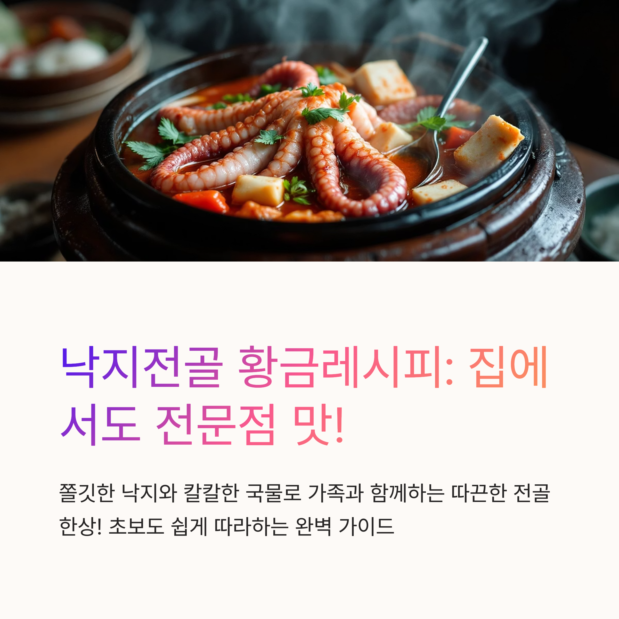 쌀쌀한 저녁, 따끈한 전골 냄비를 가운데 두고 가족들과 둘러앉아 밥을 먹는 건 정말 행복한 일이죠. 😊 저는 지난 주말, 시장에서 싱싱한 낙지를 보고 낙지전골 황금레시피에 도전했어요. 처음엔 낙지 손질이 살짝 겁났지만, 몇 번 해보니 생각보다 간단하더라고요!