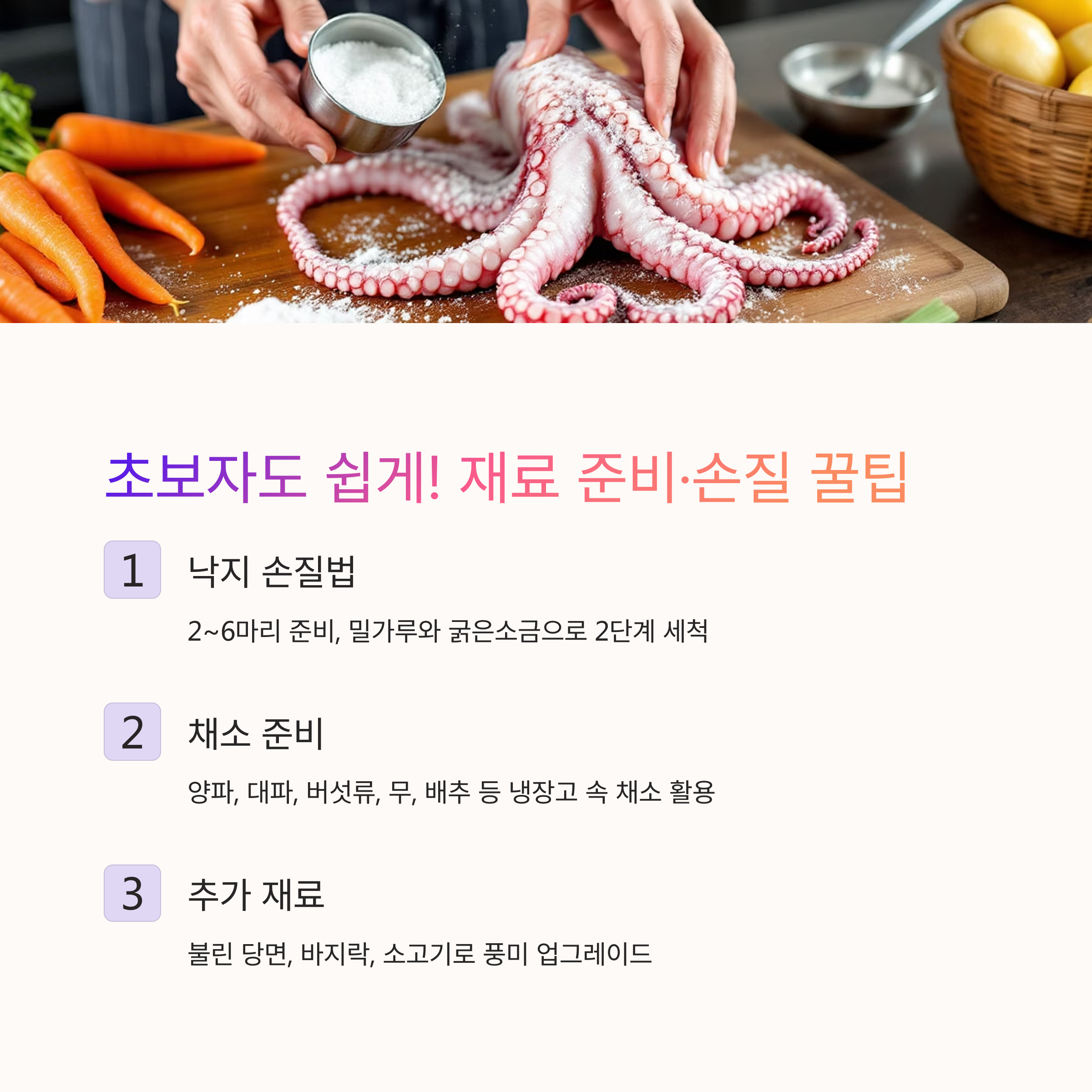 1단계: 낙지 손질과 채소 준비