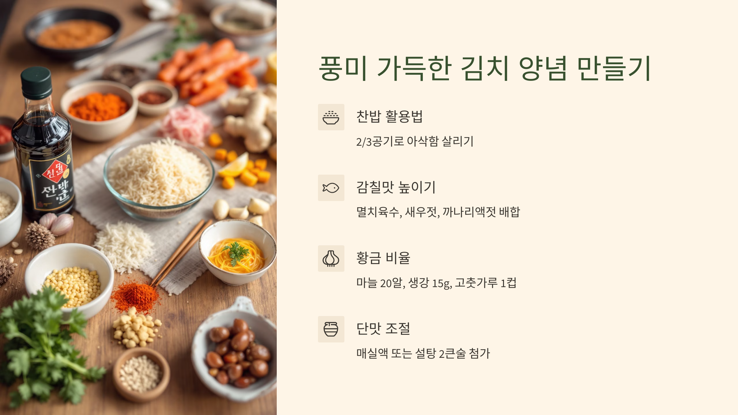🌶️ 3단계: 열무김치 맛있게 담그는법황금레시피 양념 만들기